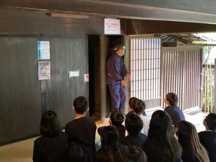 忍者屋敷では、どんでん返しや隠し階段を見せていただきました。屋根が少しずつ低くなり短刀を持つ忍者が優位になるように設計されていることも教えていただきました。