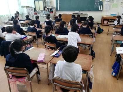 本日は、校内に不審者が侵入したことを想定した防犯訓練を実施しました。教職員は不審者を子どもに近寄らせないように対応し、子どもたちは、安全な場所に素早く移動する練習を行いました。みんな真剣な表情で取り組んでいました。警察の方からもお話をいただきました。