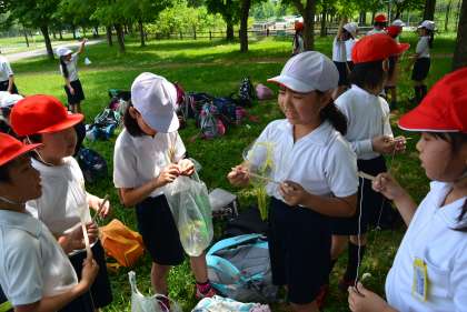 大東市の深北緑地に行きました。よく晴れて、日ざしが強かったのですが風がさわやかで、とりで広場で遊んだり、ザリガニ釣りをしたり、みんなでお弁当を食べたりと楽しく過ごせました。