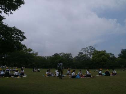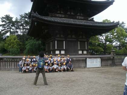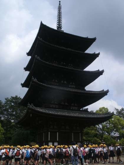 お弁当を奈良公園でたべました。帰り道では興福寺の五重塔の前で記念写真を撮りました。