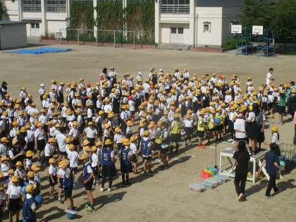 今週の児童集会はボール送りゲーム。今年の活動が始まったばかりのにこにこ班もさっと集まることができました。