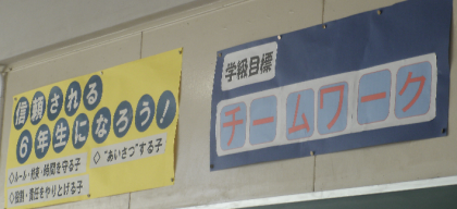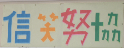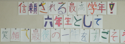 各学級の目標が教室に掲げられています。上から1組2組3組です。