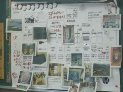 上:4年社会「浄水場の見学のまとめ」・・みんなの話し合いで浄水場の仕組みの台紙に書き込んでいきました。