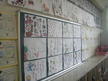 下:5年国語「俳句」・・春を題材にして小さな絵を添えました。