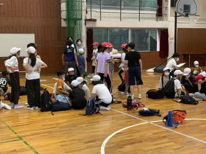 本来ならば、野外に出て大阪府立少年自然の家の敷地内をグループで探索する「屋外オリエンテーリング」の予定でしたが、こちらは強い雨が降っていますので、室内オリンピックが行われています!