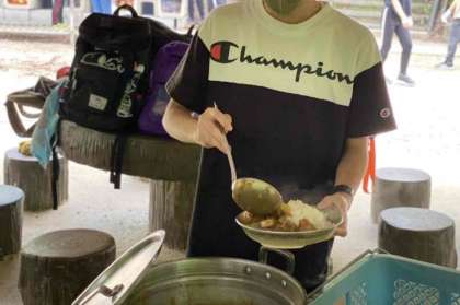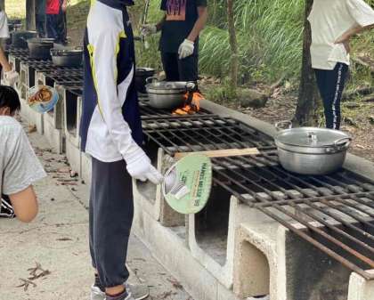 施設の方の厳しい部屋チェックを終えた後、飯盒炊爨に取り組みました!
