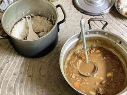ご飯を準備する人、カレーを準備する人、かまどを管理する人など、みんなで協力しました。