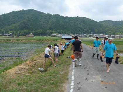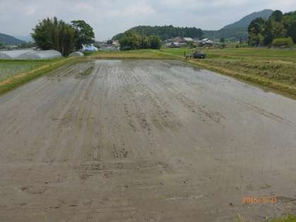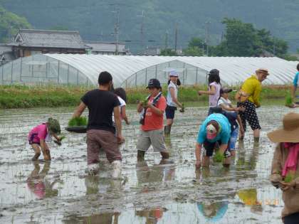 田植えも終わりました。きれいに並んだ稲を見てにっこり。秋の刈り入れが楽しみです。9月末にはきっと黄金色(こがねいろ)の稲の穂の波が見られますよ。