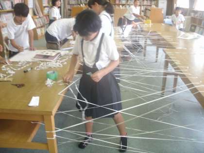 あすのわくわくふれあい集会の準備を6時間目にしました。図書室はくもの巣、家庭科室はなぞなぞめいろ、ある教室ではブラックボックス。たのしみですね。いろんなゲームで楽しめますよ。