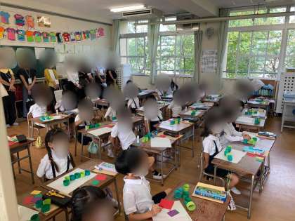 3時間目には、1年、3年、5年、5時間目には2年、4年、6年と分けて行いました。