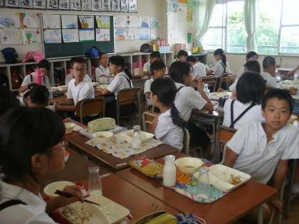 5年生です。林間学習を控えて、心はずませている5年生です。給食の話題もそのことが出ているのかも・・・。