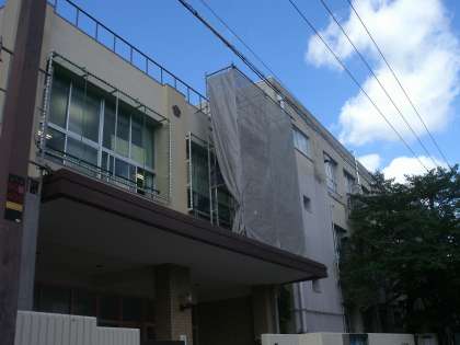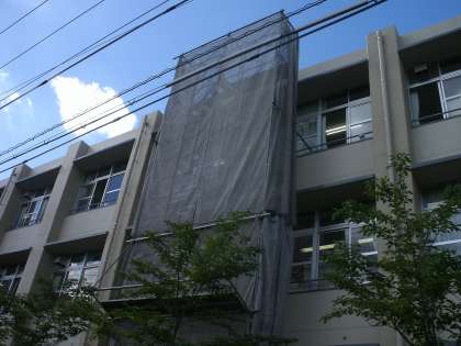 夏休み中に全教室にエアコンが設置されます。その工事のための足場が取り付けられました。このところの暑さに教室の蒸し暑さも大変ですが、2学期には涼しく学習ができます。