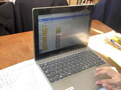 本校ではscratch(スクラッチ)という言語を使って、行います。