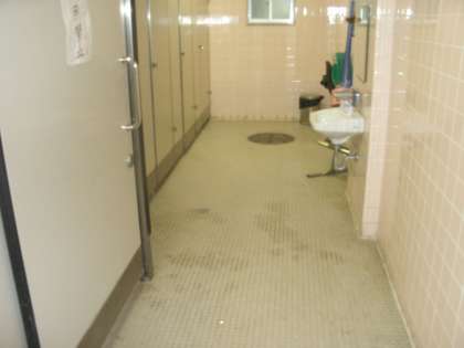 校内のトイレの尿石除去工事を、昨日今日の2日間で行いました(写真・上は1階西のトイレ)。東校舎の廊下は、管理作業員さんがまっ白に塗装しています(写真・下)。2学期をきもちよく迎えられるように、準備しているのです。教室のエアコン工事、学習園の改修工事も進んでいます。