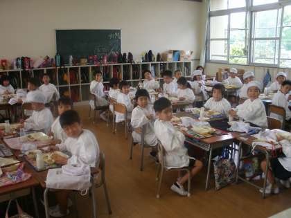 1年1組をたずねました。久しぶりの給食ですが、1年生ももう大丈夫。当番もマナーもしっかりしたものです。