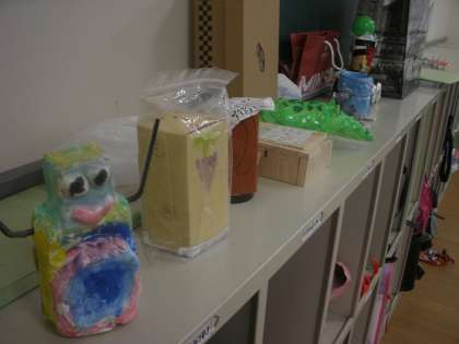 工作や図画のほかにも高学年ともなるとなかなかしっかりした理科や社会の研究作品があります(写真右)。