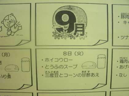 9月8日(火)今日の給食
