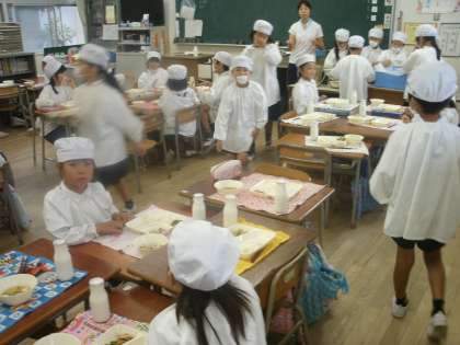 2年1組をたずねました。運動会の練習の後で、しっかり体を動かしたばかりなので、おなかもすいたことでしょう。