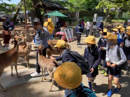 昨日、5年生は奈良公園へ春の遠足にでかけました。東大寺の大仏を見学したあと、鹿とふれあいながらお弁当を食べました。午後からは興福寺の境内でオリエンテーリングを行いました。マナーを守って行動することができ、天候にも恵まれ、素敵な1日になりました。