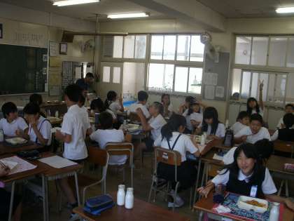 6年1組をたずねました。スパゲッティも子どもの大好きな献立の一つです。表情にもうれしさがいっぱいです。