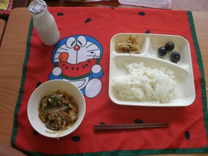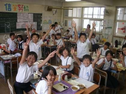 6年3組をたずねました。「いただきます。」をする少し前でした。カメラを向けると突然のはしゃぎようでした。えがおっていいものです。