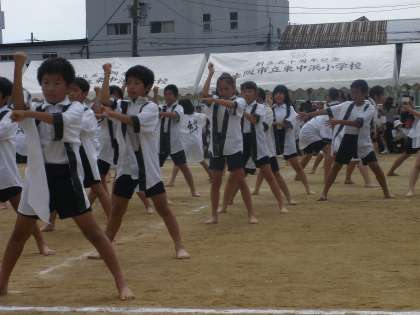毎年5年生が演じる「南中ソーラン」。今年もかっこよく決めました!