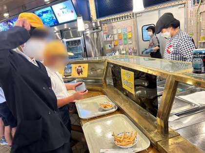 「食事以外にもスマイルもタダでスタッフさんからくれるやん」(レジに並んだ後の児童の一言)