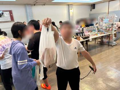 みち潮さんが用意してくださったお土産特設コーナーにてお買い物をしました。限られた予算の中から思考をめぐらして商品を選んでいました。