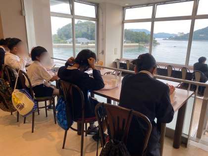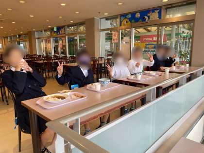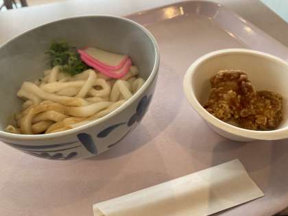 少し早めの昼食です。伊勢うどん、カレーライス、チャーハン、ラーメン、それぞれに唐揚げが付きます。子どもたちは思い思いに選んでいました。