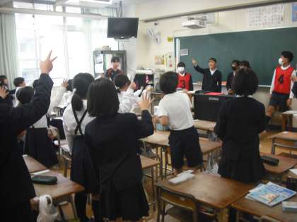 本校の縦割り班活動であるニコニコ班活動を行いました。今日は班のみんなで仲良く室内ゲームをします。6年生の班長が中心となり、遊びを企画したり会の司会・進行をしたり、子どもたち中心の活動になりました。「王様じゃんけん」や「船長さんの命令です」、「フルーツバスケット」、「ばくだんケーム」などみんなでする活動にどの顔も笑顔です。低学年の児童は高学年の児童と一緒に遊ぶ中で、自分たちと違う立場の人と接する機会を持ったり何年後かには自分たちがお世話する立場になることを感じたりできたでしょうか。高学年の人たちには責任を持つことと、低学年の役に立つ経験から自己肯定感を育む機会になったでしょうか。とても素敵な行事になったと思います。