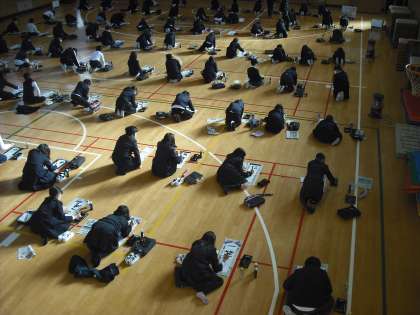 墨で床を汚して後始末が大変になった子もいましたが、これだけ大勢で一つの事を体験する機会は少ないので、子どもたちにも良い経験になった事と思います。