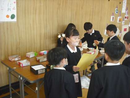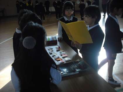 2年生の人たちが1年生にルールを説明します。いつもと違ってみんなちょっとお兄さんお姉さんになって説明しました。聞いている1年生も一生懸命です。