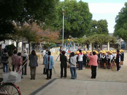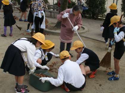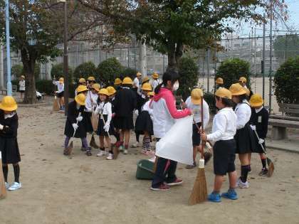毎年3年生が地域のみなさんと東中浜公園を清掃する「クリーンピック」の取り組みです。大阪市では第5回「大阪マラソン」とタイアップし、大阪市全域での清掃活動を呼び掛ける平成27年度「大阪マラソン“クリーンUP”作戦」として実施されている取り組みです。地域の方に清掃の仕方を教えていただき、いっしょにみんなの使う公園をきれいにしました。