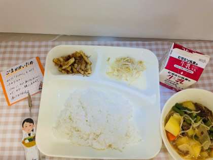 今日の給食のごまかかいためには、旬のたけのこが登場!