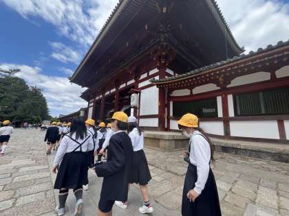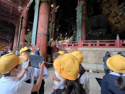 東大寺では大仏を見ました。初めて見た児童は、「思っていたよりも大きい!」と大仏の迫力に驚いていました。