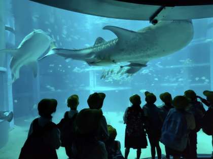 イルカやアザラシ、ジンベイザメの動きに子どもたちからは歓声があがりました。たくさんの生き物を見ることができて、みんな大喜びでした!