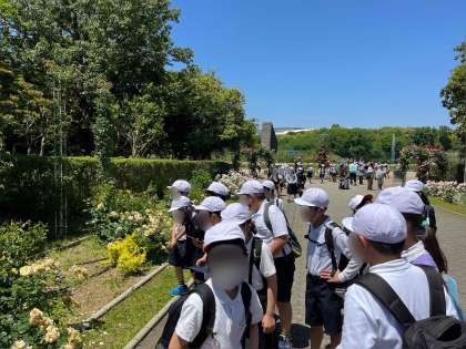 雲ひとつない天気の中、4年生は長居公園へ行きました。