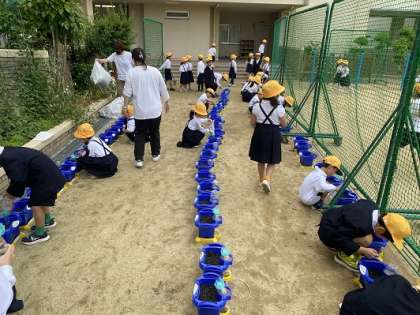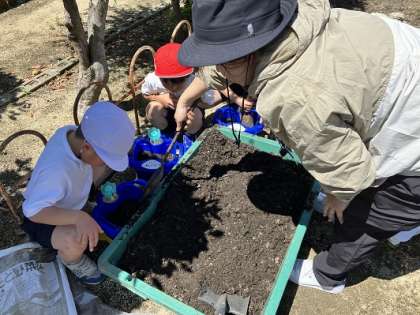 米粒より少し大きいくらいのサイズだったので苦戦する児童もいましたが、無事に全員植えることができました。