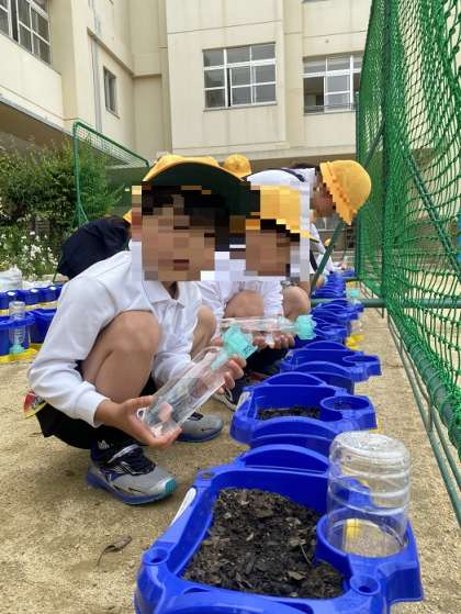 1年生は5月14日に、生活科で「あさがお」を植えました。