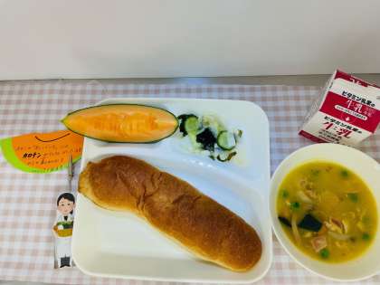 この日の給食にはクインシーメロンが登場!