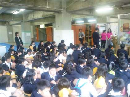 南伊勢町に着きました。あいにくの雨で、漁協の建物をお借りして昼食です。