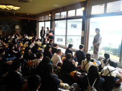 閉舎式です。これからスペイン村に出発します。子どもたちは期待に胸をふくらませています。