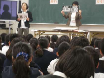 大阪府警中央サポートセンターから来ていただいて、非行防止教室をしました。真剣に聞いていた子どもたちは、暴力や万引きなどの犯罪、非行について学ぶことができました。学習態度の良さをほめていただいたのもうれしかったですね。