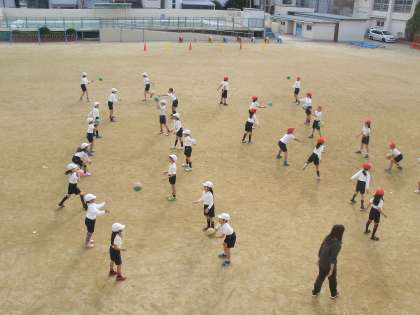 3年生の体育の学習です。朝の寒い日でしたが、午後にはあたたかい日がさしてボール運動も楽しそうでした。