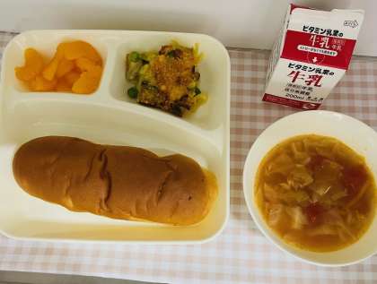 『カレーマカロニグラタン』は、ベーコン、マカロニ(米粉)、玉ねぎ、グリンピースを使用したカレー味のグラタンです。