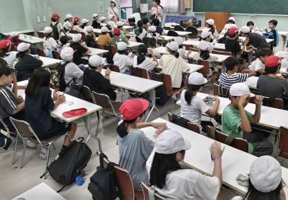 東中オリンピックで、身も心も熱くなった子どもたちを待っていたのは、冷房の効いた大研修室でのクーリングタイム。