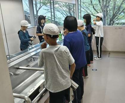 宿泊体験学習での起床後の朝の時間帯は、洗面・トイレ・寝具の片づけと子どもたちは大忙し。