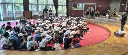 初めに少年自然の家のスタッフの方から、「美味しいカレーの作り方」のコツを教えていただきました。また、事故が起こらないように注意がありました。