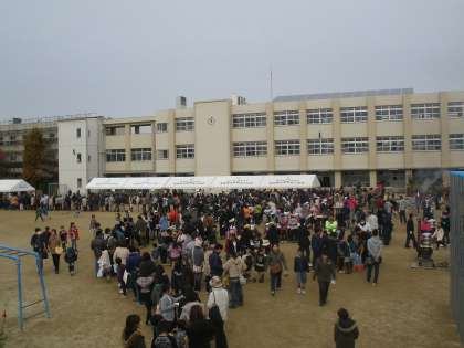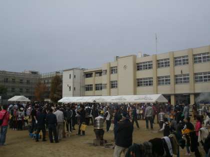 恒例の東中浜もちつき大会が運動場で行われました。昨日から準備をし、朝早くからかまどに火をおこし、湯を沸かし、もち米を蒸しました。東中浜子ども会が丹波で田植え、稲刈りをしたもち米です。180kgを午前中につき上げました。ぜんざい、きなこもち、おみやげの紅白もちは1000人分を用意しましたが、ぜんざいなどは足りなくなるほどの盛況でした。