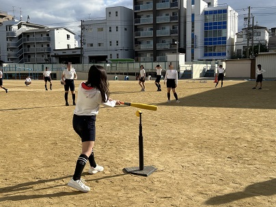 6年生はティーバッティングに取り組んでいます。バットを振り、ボールに当てる。習い事で経験がないと、なかなかできないものではないでしょうか。